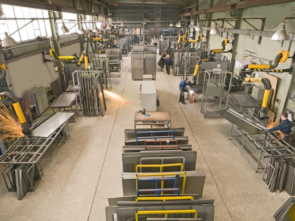 I verkstaden ligger metallbitar uppradade, redo att monteras. MetallMontage tillverkar modulära konstruktioner för bygg- och anläggningsbranschen. Arbetet är manuellt, ibland fysiskt, men i stor utsträckning mekaniserat. ”Det är inte gruvarbete”, sammanfattar Andersson.
